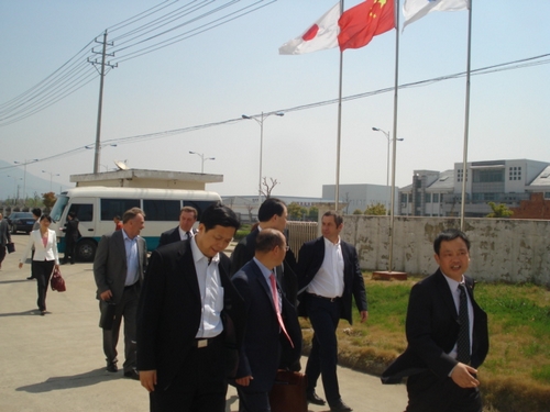圖為莫夫昌副州長(右2)一行在巢湖嘉誼朱玉倉總經理(右1)帶領下參觀工廠