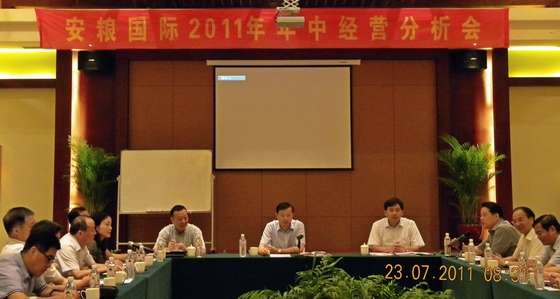 7月22日-23日,安糧國際2011年年中經(jīng)營分析會在巢湖市半湯御泉山莊召開。安糧國際董事長朱亮、總經(jīng)理曹訓(xùn)立等公司高管,各部室主要負(fù)責(zé)人、直屬企業(yè)負(fù)責(zé)人等52人參加了會議。安糧控股副總裁葛志毅及職能部室負(fù)責(zé)人潘冬生、張來往、武義海、吳頎等出席了會議。