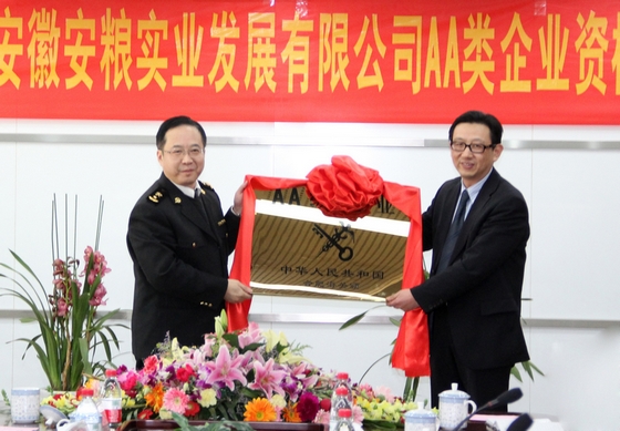 2012年2月2日,“合肥海關(guān)授予安糧實(shí)業(yè)AA類企業(yè)授牌儀式”在盛安廣場(chǎng)22樓安糧集團(tuán)會(huì)議室隆重舉行。合肥海關(guān)稽查處處長(zhǎng)謝曉鷗、現(xiàn)場(chǎng)業(yè)務(wù)處處長(zhǎng)李永春,安徽國(guó)貿(mào)集團(tuán)董事長(zhǎng)、黨委書記范陽(yáng),省商務(wù)廳貿(mào)管處處長(zhǎng)夏勇,安糧集團(tuán)董事長(zhǎng),安糧控股副總裁葛志毅等有關(guān)領(lǐng)導(dǎo)以及安糧實(shí)業(yè)董事長(zhǎng)石紅、總經(jīng)理周洪等出席了授牌儀式。安糧實(shí)業(yè)有關(guān)部門負(fù)責(zé)人和業(yè)務(wù)人員參加了授牌儀式。