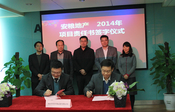 會議還聽取了各部室和各項目公司年度工作總結(jié)和計劃匯報,并在所有與會人員的見證下,臨沂、蕭縣、安福、東怡、和縣、銅陵、徐聞7個項目公司負責人與總經(jīng)理汪勇簽署了2014年經(jīng)營目標責任狀。
