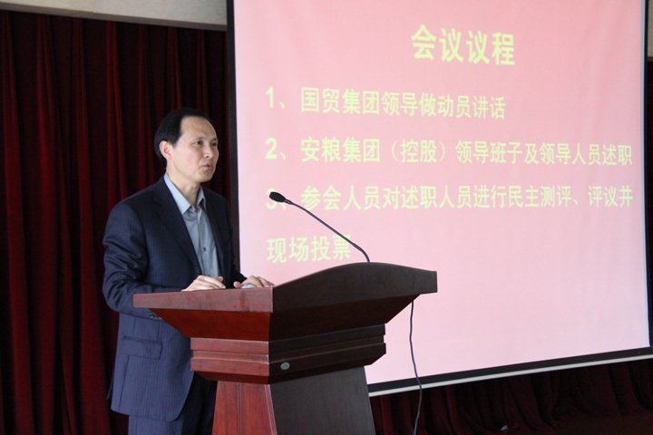 根據(jù)國貿(mào)集團黨委的統(tǒng)一部署和要求,4月8日安糧集團(控股)2015年度領(lǐng)導(dǎo)班子及領(lǐng)導(dǎo)人員述職述廉述責(zé)大會在盛安廣場5樓隆重召開。國貿(mào)集團黨委副書記、副總經(jīng)理李明輝攜相關(guān)部室負(fù)責(zé)人和工作人員出席了會議,安糧集團職代會代表、安糧集團及控股本部中層以上管理人員、各基層黨組織委員及各板塊公司高管等近百名代表參加了本次會議。會議由集團黨委副書記孫毅主持。