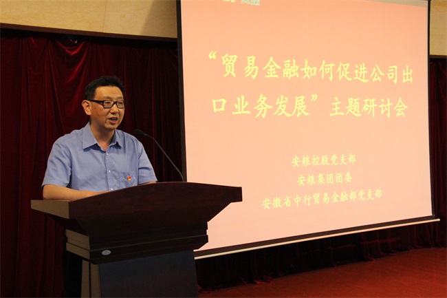 為強(qiáng)化企業(yè)黨建,加強(qiáng)黨團(tuán)建設(shè)結(jié)合,合力助推公司高質(zhì)量發(fā)展,在公司2019年經(jīng)營指導(dǎo)思想引領(lǐng)下,2019年5月28日下午,安糧控股黨支部與安糧集團(tuán)團(tuán)委聯(lián)合安徽省中行貿(mào)易金融部黨支部在盛安廣場(chǎng)五樓多功能廳開展了“貿(mào)易金融如何促進(jìn)公司出口業(yè)務(wù)發(fā)展”主題研討會(huì)。省中行貿(mào)易金融部黨支部書記、總經(jīng)理何浩,副總經(jīng)理王光建,安糧集團(tuán)黨委委員、副總裁、工會(huì)主席周洪,安糧控股黨支部書記、國際結(jié)算總監(jiān)武義海等出席會(huì)議,各相關(guān)支部黨員、貿(mào)易板塊團(tuán)員青年及相關(guān)業(yè)務(wù)人員共六十余人參加。