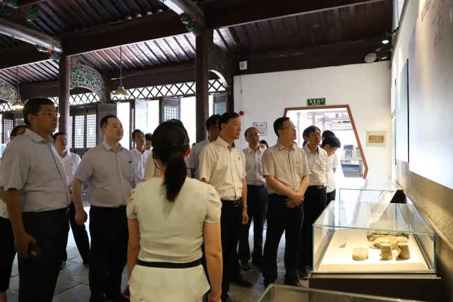在瑤崗渡江戰(zhàn)役總前委舊址,黨員同志們在現(xiàn)場講解員的帶領(lǐng)下,認(rèn)真觀看渡江戰(zhàn)役紀(jì)錄片,細(xì)致瀏覽一張張泛黃的歷史照片和珍貴的文獻(xiàn)實(shí)物,仔細(xì)端詳著陳舊卻依舊閃光的戰(zhàn)斗槍支、大刀和一件件浸潤著先烈血汗的棉褥、草鞋,在生動的講述中,感受70年前那段慷慨激昂、艱苦卓絕的革命歲月。