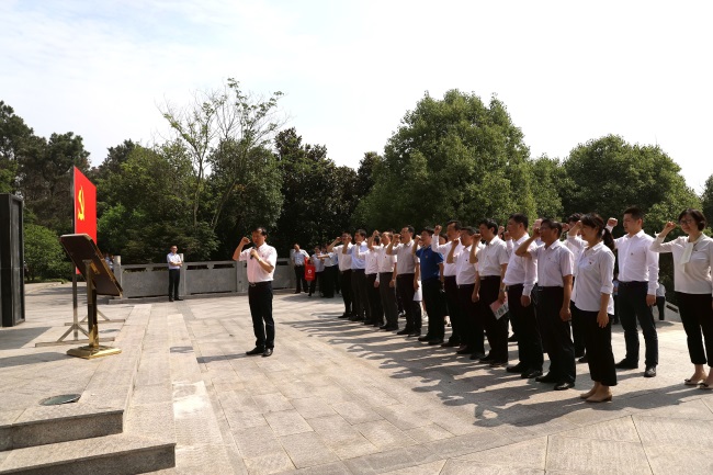 堅(jiān)守初心,勇?lián)姑?/span>6月28日上午,安糧集團(tuán)黨委組織集團(tuán)黨委班子及系統(tǒng)各基層黨支部支委以上干部共30余人赴肥東縣茶壺山革命烈士陵園、瑤崗渡江戰(zhàn)役總前委舊址,舉行緬懷革命先烈、重溫入黨誓詞、接受革命傳統(tǒng)教育活動,并現(xiàn)場召開“不忘初心、牢記使命”主題教育動員會,以革命傳統(tǒng)教育開啟安糧集團(tuán)主題教育第一課。