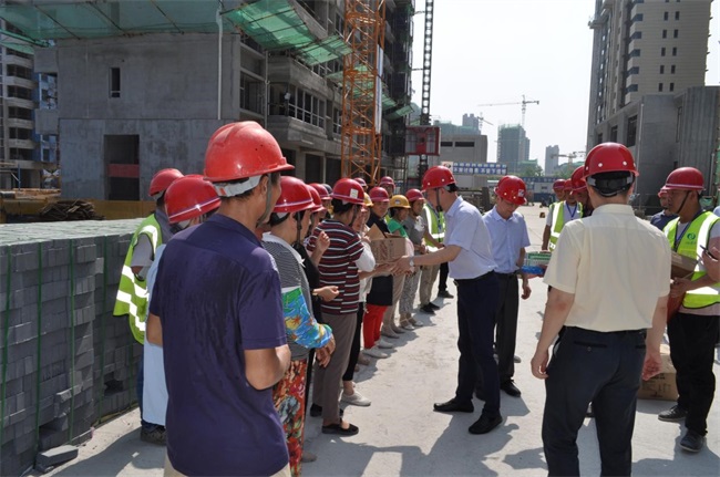 時至大暑,日盛三伏。23日上午9點(diǎn),曹訓(xùn)立書記一行來到由總承包分公司承建的濱湖碧桂公館項(xiàng)目部,慰問鏖戰(zhàn)酷夏的一線職工,為他們送去防暑降溫慰問品。曹訓(xùn)立書記與總承包分公司及項(xiàng)目主要負(fù)責(zé)人進(jìn)行了細(xì)致交流,叮囑公司和項(xiàng)目部要做好防暑降溫工作,合理安排施工時段,盡量避開高溫天氣,注意勞逸結(jié)合,給一線員工創(chuàng)造良好的工作環(huán)境,確保員工身體健康和施工安全,保障各項(xiàng)目工作有條不紊地開展。