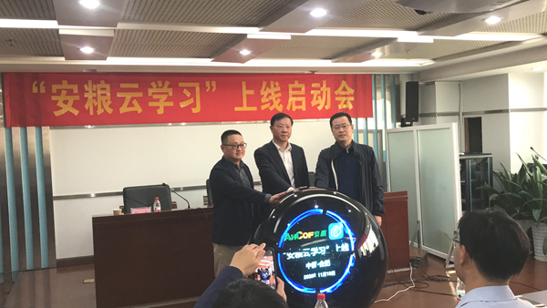 夢想從學(xué)習(xí)開始,事業(yè)從實踐起步。11月18日,安糧集團職工網(wǎng)絡(luò)學(xué)習(xí)培訓(xùn)平臺-------“安糧云學(xué)習(xí)”------上線啟動會在盛安廣場18樓舉行,安糧集團黨委書記、董事長曹訓(xùn)立,安糧集團黨委副書記、紀(jì)委書記孫毅與平臺供應(yīng)商江蘇云學(xué)堂副總經(jīng)理張杰共同啟動平臺,安糧系統(tǒng)各單位近60名員工作為學(xué)習(xí)代表見證了“安糧云學(xué)習(xí)”平臺正式上線。