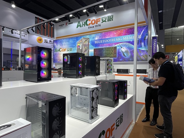 南方一部在本屆廣交會一期主要參展游戲電腦機(jī)箱產(chǎn)品,從入門級到高端游戲機(jī)箱齊全。部門在營銷展示上采用一系列新穎的形式,展臺的主通道采用目前比較流行的魚缸游戲機(jī)箱作為看點,用可藍(lán)牙連接手機(jī)和電腦的高端游戲機(jī)箱吸引客戶。為了突出參展效果,所有游戲機(jī)箱都裝上了RGB變色風(fēng)扇。多樣化的變色風(fēng)扇與南方二部的機(jī)械鍵盤吸引了大量客戶駐足觀看。消費電子展6個攤位,突出游戲類產(chǎn)品的裝修風(fēng)格,搭配大氣的門頭、顯眼的海報燈箱,使客戶在進(jìn)館時只需一眼就能夠鎖定目光。