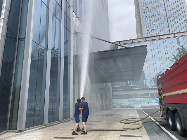 6月24日下午3時,消防應急演練總指揮下達演練開始指令。隨著煙霧彈在辦公樓內(nèi)拋擲,煙霧觸發(fā)安糧中心辦公樓火警警報,頓時消防警報和消防警鈴響起。隨后各小組迅速按照部署展開滅火救援行動,消防和應急救援隊員有序引導員工緊急疏散撤離至避難層,緊接著包河區(qū)應急救援大隊消防救援車輛到達現(xiàn)場,開展了火情偵查、外圍滅火等系列滅火救援行動。整個演練過程中,各小組配合默契、分工有序,圓滿完成了緊急報警、警戒疏散、醫(yī)療救護和滅火救援等演練環(huán)節(jié),及時排除了火災險情,有效達到了演練目的和預期效果。