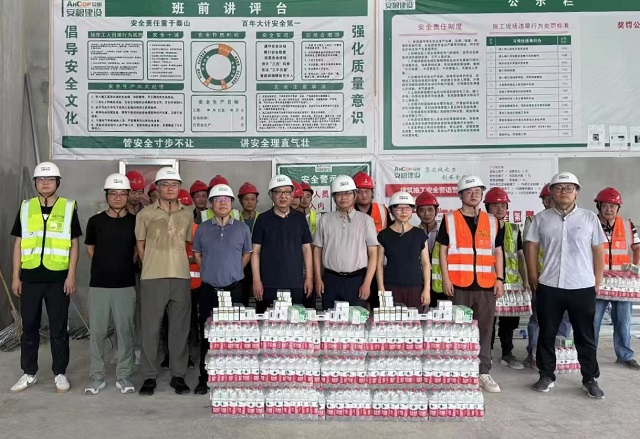 炎炎夏日,酷暑高溫,為切實(shí)做好職工夏季防暑降溫工作,用心用情關(guān)愛(ài)一線職工,8月2日,安糧集團(tuán)工會(huì)開(kāi)展“關(guān)愛(ài)職工,夏送清涼”活動(dòng),工會(huì)主席周洪帶隊(duì)來(lái)到安糧建設(shè)項(xiàng)目工地,對(duì)在高溫條件下作業(yè)的職工進(jìn)行慰問(wèn),為奮戰(zhàn)在酷暑一線的工作人員送清涼、送關(guān)懷。