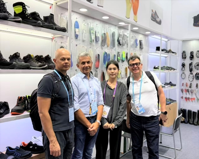 在工具類展區(qū),安糧在常規(guī)安全鞋產(chǎn)品基礎(chǔ)上,新增勞保手套、多功能剪刀、冰爪、反光材料等多款新產(chǎn)品,全面覆蓋戶外安全防護場景,凸顯“專業(yè)性”與“全面性”雙重優(yōu)勢。為讓客戶直觀感受產(chǎn)品品質(zhì),展區(qū)采用原木色層板與洞洞板靈活組合的裝修設(shè)計,方便客戶觸摸、體驗產(chǎn)品的材質(zhì)、工藝與功能,如拉扯勞保手套的耐磨度、體驗多功能剪刀的剪切效果、查看反光材料在模擬黑暗環(huán)境下的警示亮度。目前已有來自法國的戶外用品品牌商提出樣品寄送需求,另有來自智利的的安全防護設(shè)備經(jīng)銷商明確表達長期合作意向。