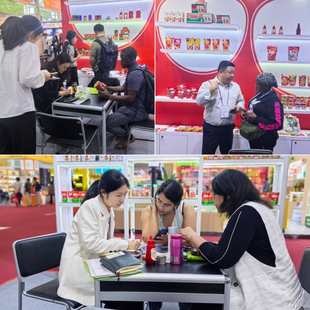 在食品展區(qū),本次以番茄沙司系列為核心,不僅推出青椒洋蔥味、蘑菇味等多款差異化創(chuàng)新口味,更搭配PET瓶裝、帶嘴立袋兩種新型包裝,融合獨(dú)特的南美風(fēng)味,憑借高顏值與優(yōu)口感贏得全球采購(gòu)商青睞,市場(chǎng)反饋熱烈。截至目前,已與非洲、中東、東南亞及“一帶一路”沿線核心市場(chǎng)的采購(gòu)商,初步達(dá)成十個(gè)貨柜的番茄沙司采購(gòu)意向,覆蓋多區(qū)域主流消費(fèi)需求。